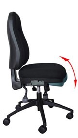 Adjusting the seat to a forward-tilt position, reduces the rotation of the pelvis when you are seated. By doing so, the natural ‘S’ shaped curvature of the spine is maintained. This decreases the pressure in the lumbar discs, thereby reducing, and in some cases eliminating, chronic lower back pain. According to Occupational Safety and Health Administration (OSHA), a forward sloping seat helps increase blood flow to the lower extremities and at the same time reduces the pressure in the discs of the lower back. What happens when you sit? To prevent you “sliding forward off the seat,” the forward-tilt is typically set at approximately 3 degrees and is limited to a maximum of 5 degrees. This feature is not available on ergonomic chairs fitted with a synchro mechanism.