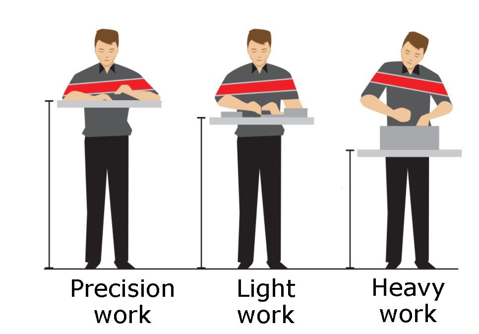 If you do non-office work at a desk or workstation, then the above height ranges may not apply. For example, precision assembly or laboratory work typically requires a higher work surface, and heavy assembly a lower one.