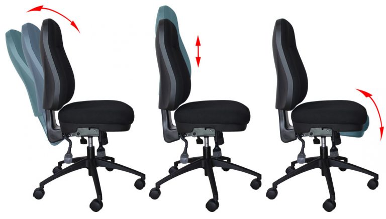 • Synchronous (synchro) swivel mechanism. Here the movement of the seat and backrest is mechanically linked. In other words, when the backrest moves, the seat will move with it, and in the same direction.